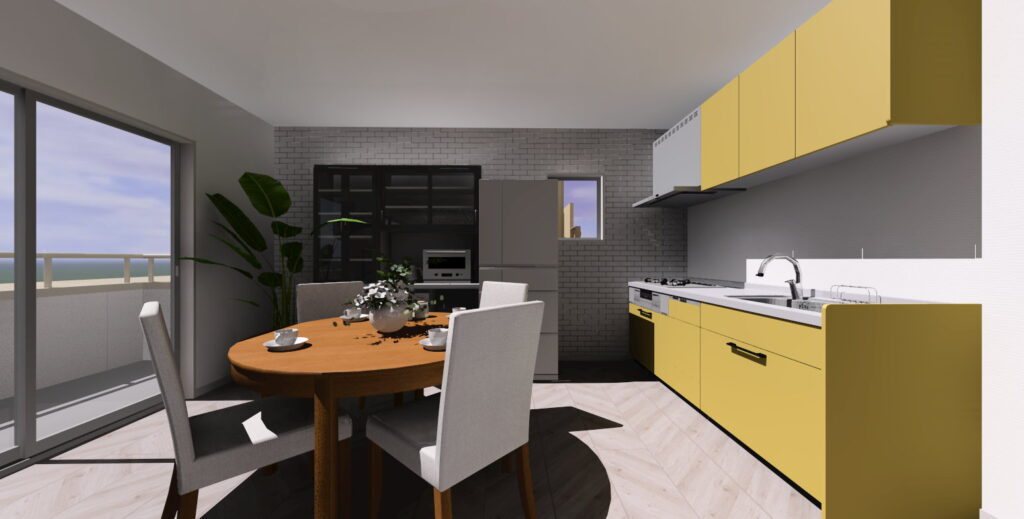 ポイントは黄色いキッチン。